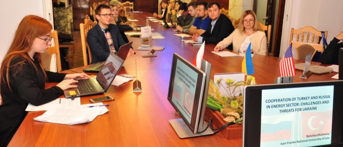 В ході виступу доцент кафедри міжнародних відносин і дипломатичної служби Львівського національного університету імені Івана Франка Наталія Шаленна зосередила свою увагу на турецько-російському співробітництві в енергетичній сфері. Доповідачка наголосила, що воно концентрується навколо питань будівництва та введення в експлуатацію газопроводу “Турецький потік”, а також будівництво атомної електростанції в Аккую (Туреччина). Наталія Шаленна наголосила, що реалізація проекту “Турецький потік” становить неабиякий виклик не лише для енергетичної безпеки та економічних інтересів України, а й для національної безпеки нашої держави в цілому, адже позбавивши Україну статусу основного транзитера енергоносіїв до Європи, Росія зможе потенційно відкрити шлях для подальшого просування своїх військ на територію української держави.