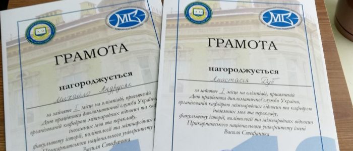 18 грудня 2019 р. до Дня працівника дипломатичної служби України кафедри міжнародних відносин та іноземних мов і перекладу провели для учнів старших класів олімпіаду, присвячену відносинам України та Європейського Союзу. За результатами виконання тестових завдань переможцями олімпіади стали: Михайло Андрусяк та Анастасія Дуб, які вибороли І місце, Валентина Чобанюк, яка здобула ІІ місце та Юрій Ваков та Богдан Пиндус-Пастух, які поділили ІІІ місце.