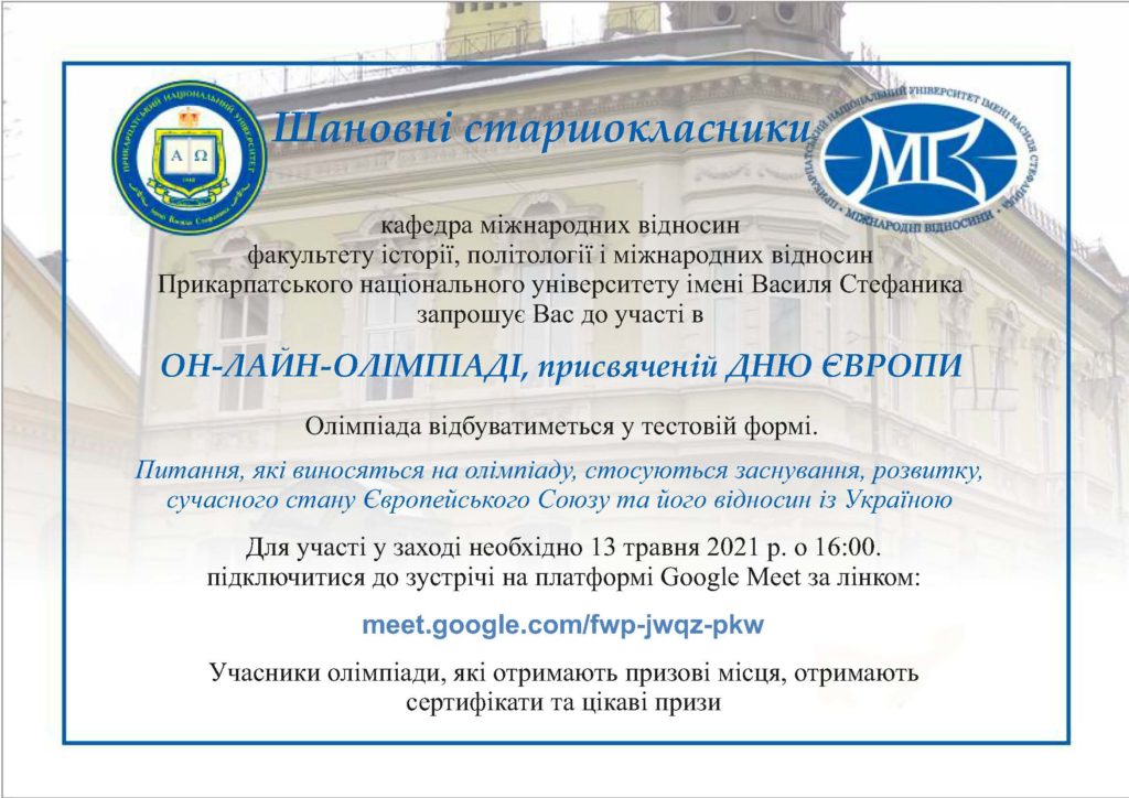 28 квітня відбулась урочиста онлайн-зустріч, на якій оголосили результати конкурсу малої прози «Коротко. Сильно. Страшно», приуроченого до 150-річчя від дня народження Василя Стефаника. Нагадаємо, що організатором конкурсу виступив Факультет філології Прикарпатського національного університету. Із вітальними словами до учасників віртуальної зустрічі Читати далі