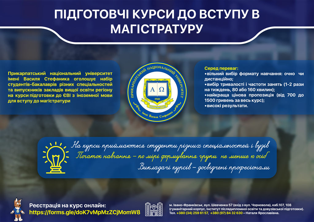 Відкрито набір на курси підготовки студентів до ЄВІ для вступу в магістратуру у 2023 році