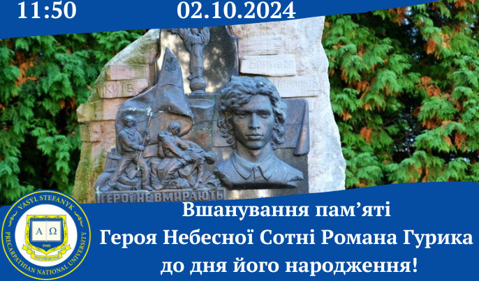 У середу, 2 жовтня, об 11:50 год на території університету біля пам’ятного Обеліску, присвяченого студентам і викладачам, які загинули у боротьбі за незалежність України, відбудеться вшанування пам’яті Героя Небесної Сотні, Героя України Романа Гурика. Цього дня йому могло б виповнитися Читати далі