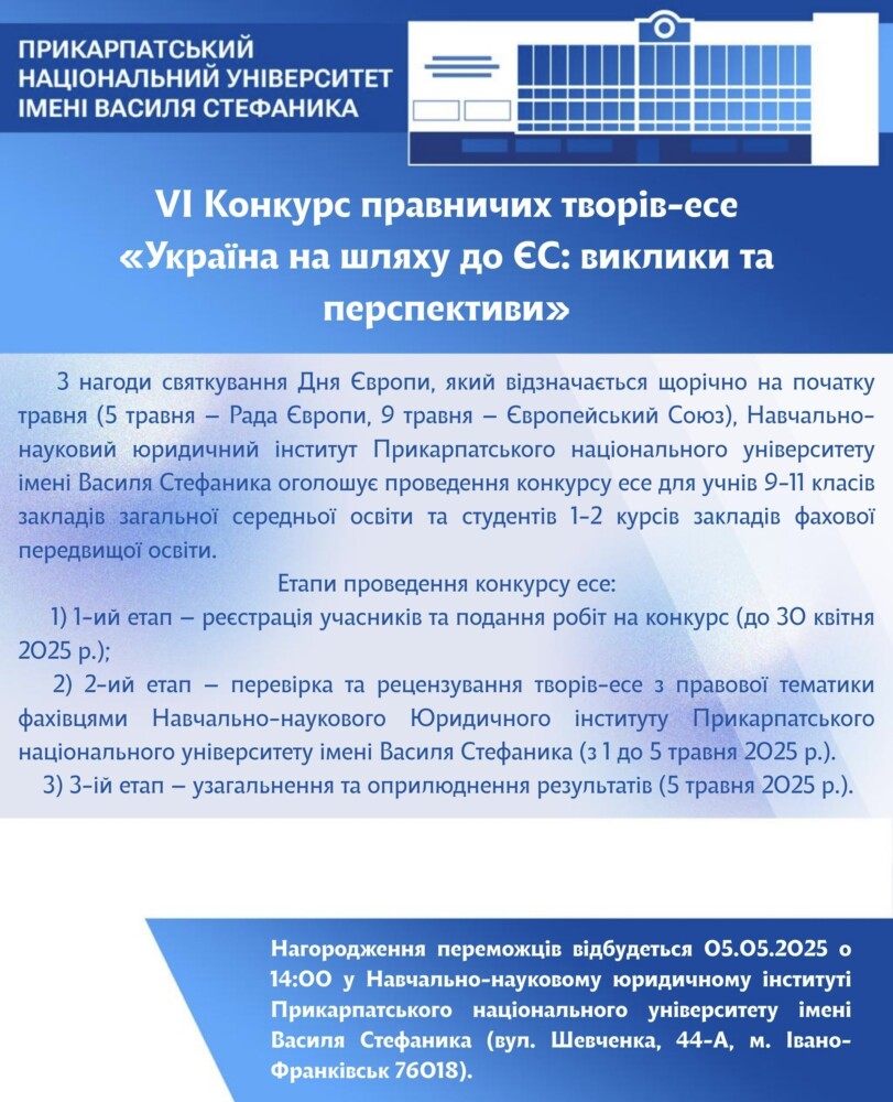 7 травня 2025 року з 10 до 13 години у Прикарпатському (Карпатському університеті імені Василя Стефаника) відбудеться STEFANYK OPEN DAY — подія для студентів, які планують продовжити навчання на другому (магістерському) рівні. До участі запрошуються студенти 4 курсу, випускники бакалаврату Читати далі