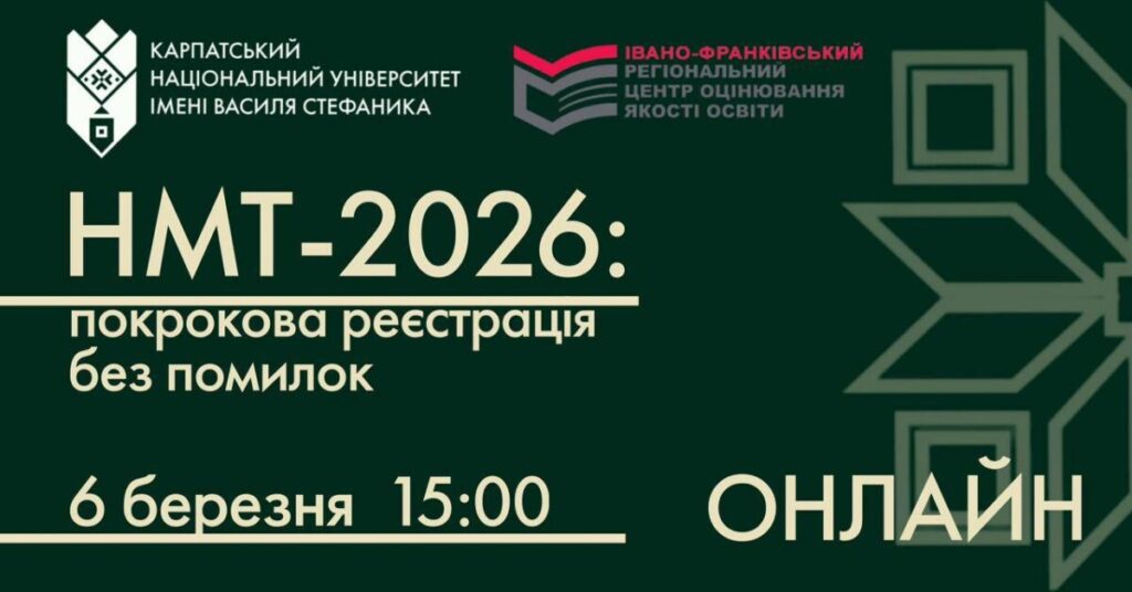6 березня о 15:00 Карпатський національний університет імені Василя Стефаника запрошує цьогорічних вступників та їхніх батьків на фахову розмову про НМТ-2026! Спікерами на онлайн-заході будуть: заступник директора Івано-Франківського регіонального центру оцінювання якості освіти Іван Любінець; заступник Голови Приймальної комісії КНУВС, Читати далі