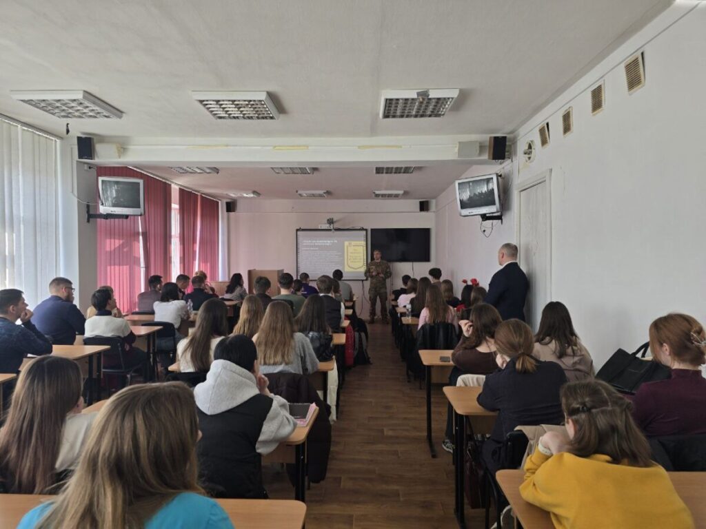 Ігор Валерійович наголосив, що інформаційний фронт сьогодні є не менш важливим, ніж бойовий. Ворог активно використовує дезінформацію, пропаганду та психологічний тиск, намагаючись впливати на громадську думку, посіяти паніку й недовіру. Саме тому надзвичайно важливо вміти критично оцінювати джерела інформації, перевіряти факти та не поширювати неперевірені повідомлення. Під час зустрічі студенти мали можливість поставити запитання, обговорити роль молоді у формуванні інформаційної стійкості суспільства та дізнатися більше про те, як кожен громадянин може долучитися до протидії інформаційним загрозам. Жвава дискусія засвідчила зацікавленість студентської молоді у темі безпеки держави та відповідальності за інформаційний простір.