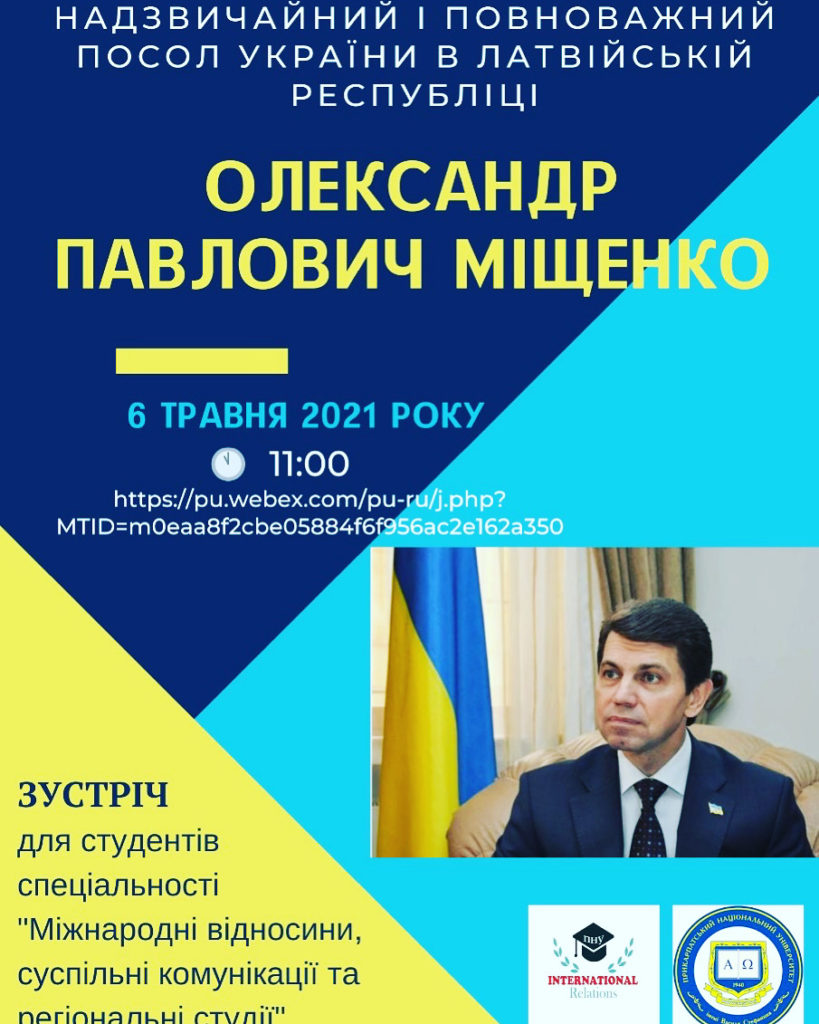 Сьогодні відбулася онлайн зустріч студентів спеціальності 291 «Міжнародні відносини, суспільні комунікації та регіональні студії» з Надзвичайним і Повноважним Послом України у Латвійській Республіці Олександром Міщенком. У вступному слові ректор І. Цепенда звернув увагу на важливість таких зустрічей, які можуть мати вирішальний Читати далі